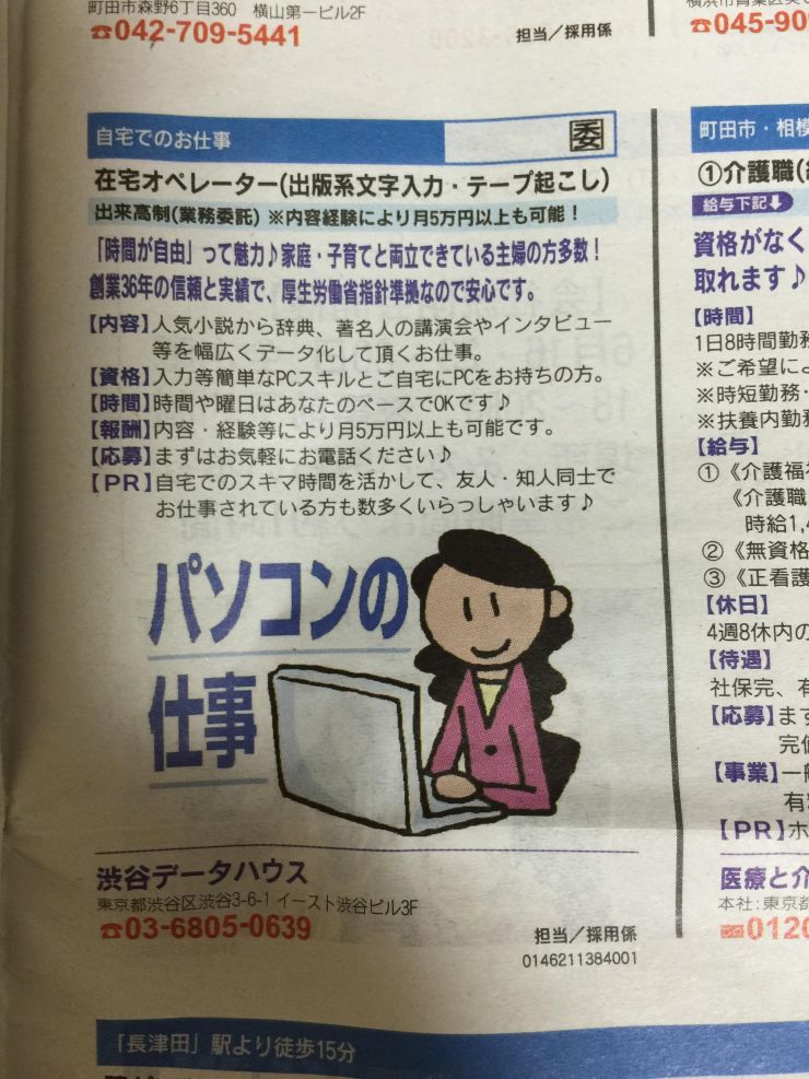 創業35年 東京 渋谷 東京文字クラブ 国指針準拠 在宅ワーク文字入力スタッフ募集