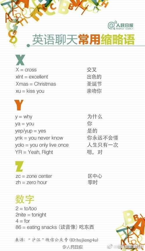 A Z最全英语聊天缩略语 让你网聊更潮更有逼格 高清图集 新浪网