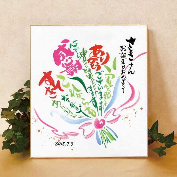 筆文字の花束色紙 色紙のプレゼント 華やか筆文字 オリジナル お誕生日 還暦祝 退職 新築 結婚式 ご栄転 快気祝 記念日のお祝い 気持ちを添える Mp4 02 Moji Para 筆文字パラダイス 通販 Yahoo ショッピング