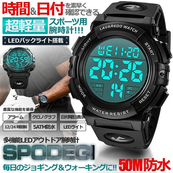 軽量 スポーツ Led デジタルウォッチ 腕時計 時間 日付 大きい文字 アラーム ストップウォッチ機能 50m 防水 Spodegi S Mh1205 13a Com Shot 通販 Yahoo ショッピング