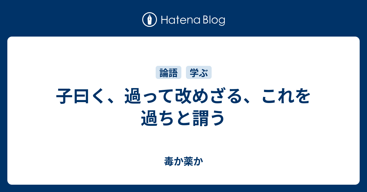 子曰く 過って改めざる これを過ちと謂う 毒か薬か