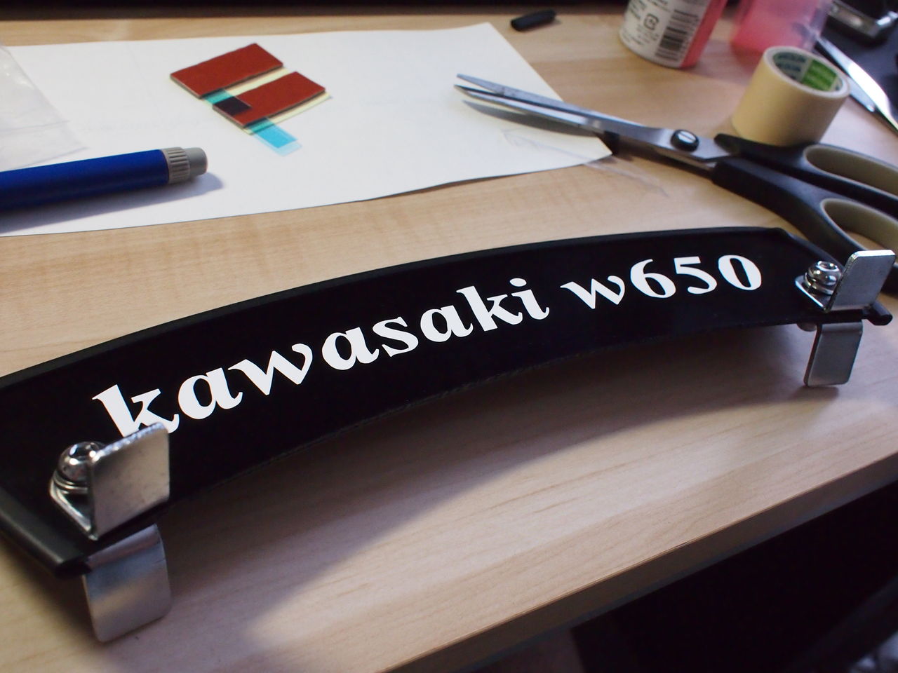 加工いらずの風切りネームプレート sr400カスタム野郎