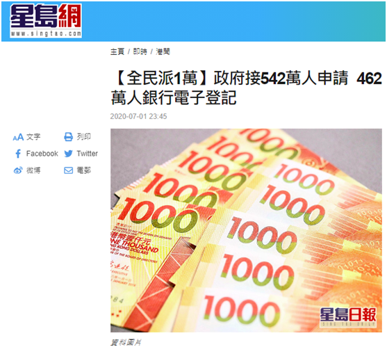 港府 全民派1万 已有542万人提出申请 香港 新浪财经 新浪网