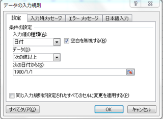 エクセルの入力規則で日付を半角で Yyyy Mm Dd のみ入力出来るようにし Yahoo 知恵袋
