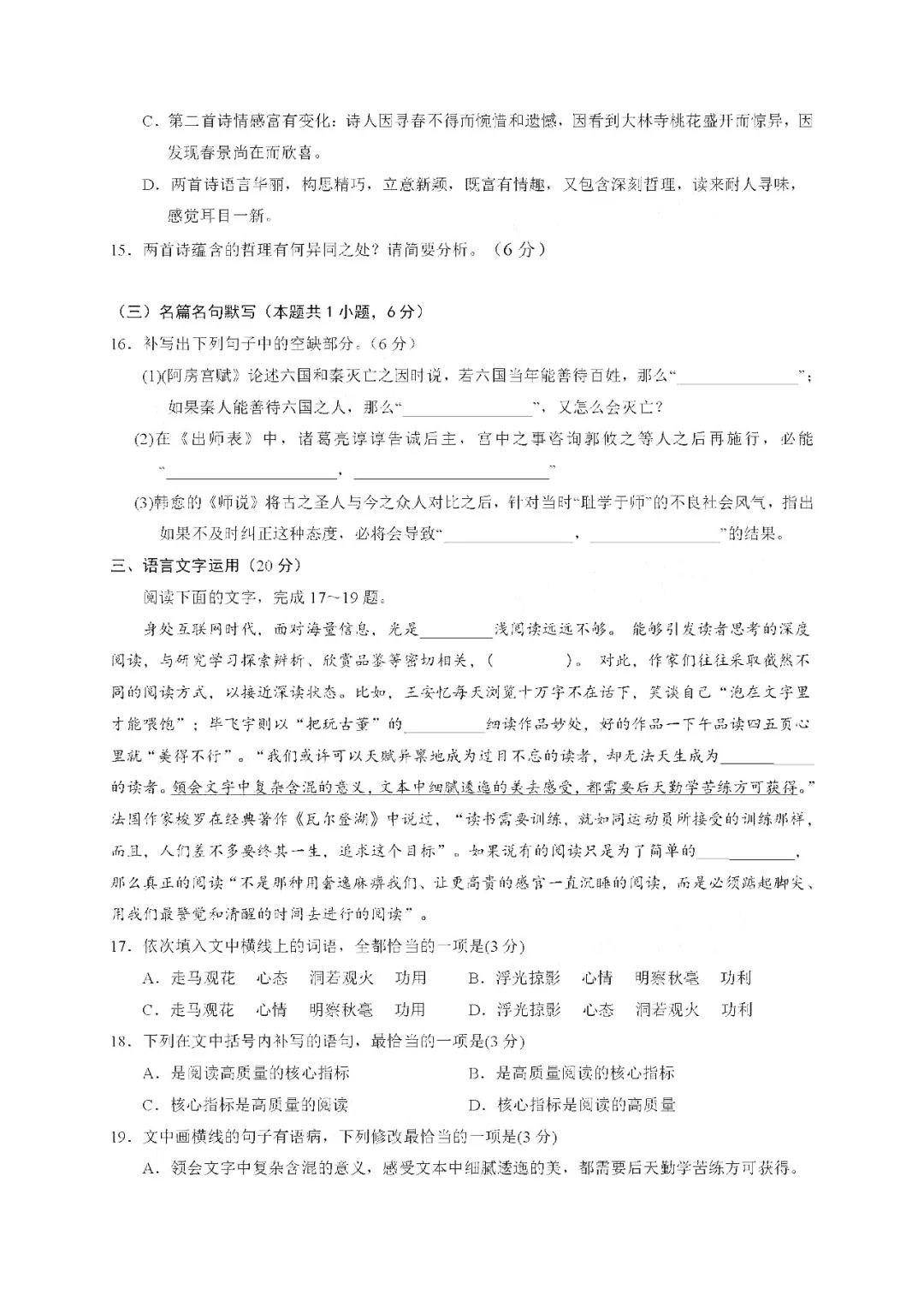 2021年北京石景山区高三期末考试语文试题及答案 5 北京高考在线